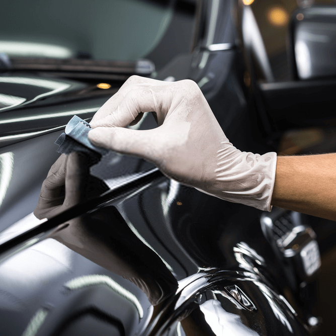 A exterior detailing with a pre-wash, wheel cleaning, a gentle snow foam with contact wash, and a ceramic spray seal before drying.